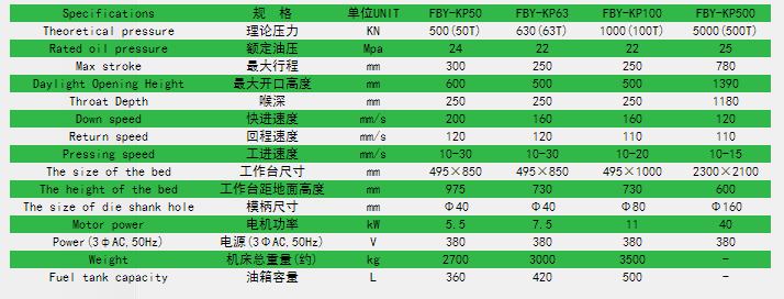 單柱液壓機(jī)系列技術(shù)參數(shù):