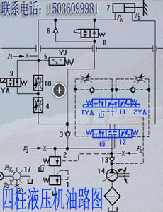 四柱液壓機(jī)由主機(jī)及控制機(jī)構(gòu)兩大部分組成。液壓機(jī)主機(jī)部分包括液壓缸、 橫梁、立柱及充液裝置等。動(dòng)力機(jī)構(gòu)由油箱、高壓泵、控制系統(tǒng)、電動(dòng)機(jī)、壓力 閥、方向閥等組成。